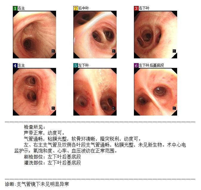 G试验:46 pg/mL;呼吸道六项病原体(甲流、乙流、呼吸道合胞病毒、人鼻病毒、腺病毒、肺炎支原体)、新冠病毒核酸、结核抗体阴性;痰未查见真菌孢子及菌丝、未查见抗酸杆菌。