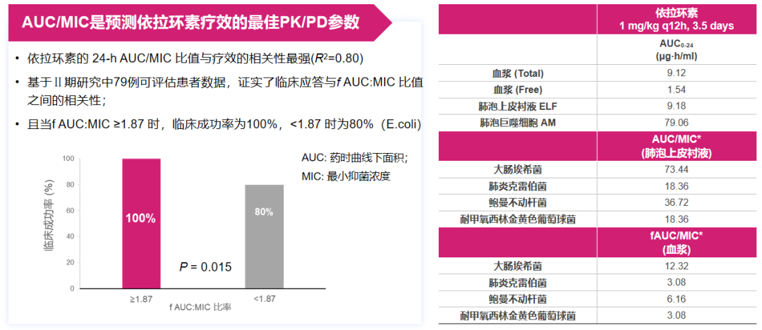 △依拉环素的组织穿透性强,且fAUC/MIC可作为预测疗效的PK/PD参数