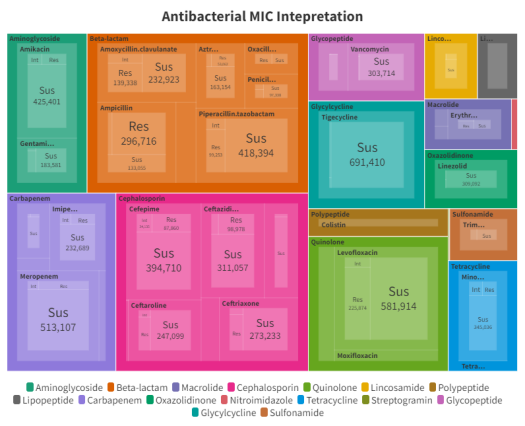 图1按临床和实验室标准协会(CLSI)解释的最小抑菌浓度(MIC)分类的细菌分离株计数