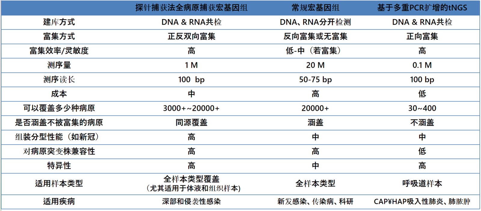 tNGS正是上述的“正向富集”测序方法,通过设计特异性引物,采用多重PCR建库体系,对目标序列进行靶向扩增富集,然后应用二代或三代测序技术进行高通量测序,实现对病原广谱精准检测。与mNGS相比,tNGS在某些样本类型中显示出更高的敏感性,尤其是在人源细胞含量较高的样本中。