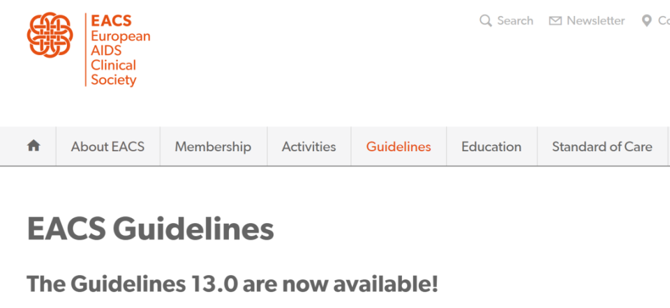 EACS GuidelinesThe Guidelines 13.0 are now available! https://www.eacsociety.org/guidelines/eacs-guidelines/