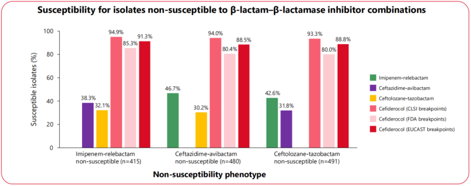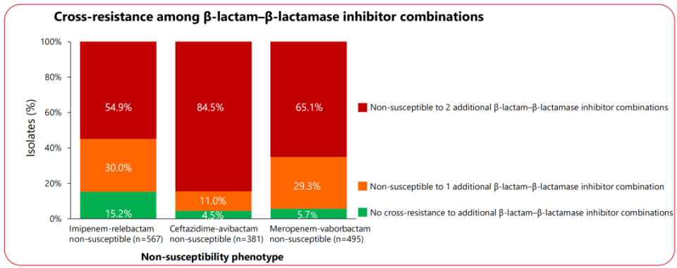 [9]DeJonge B L M, et al. β-Lactam–β-Lactamase Inhibitor Combinations Show a High Degree of Cross-Resistance in Gram-Negative Bacteria, but Not to Cefiderocol. Results from the SENTRY Antimicrobial Surveillance Program (2020–2024). IDWeek 2025; Abstract 627.
