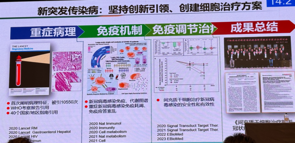 王福生院士团队长期深耕新突发传染病防治手段的创新发展,自2020年起在The Lancet系列期刊、Nature系列期刊、Cell正刊及系列期刊等国际顶级期刊发表重要文章,在国际上首次阐明重症新型冠状病毒感染的病理特征,被引10550次,被WHO考察报告及40个国家/地区指南引用;同时阐释了新冠病毒免疫、代谢图谱,及其免疫耗竭、免疫应答紊乱的机制,并探索了间充质干细胞治疗新冠病毒感染的安全性和有效性,在国际上最早开展相关的I/II期临床研究,初步阐明该创新治疗的安全性和有效性,相关研究成果论文入选中华医学科技TOP100论文。