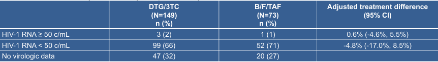 1. 病毒学抑制下实现平稳转换,B/F/TAF持续治疗疗效稳定