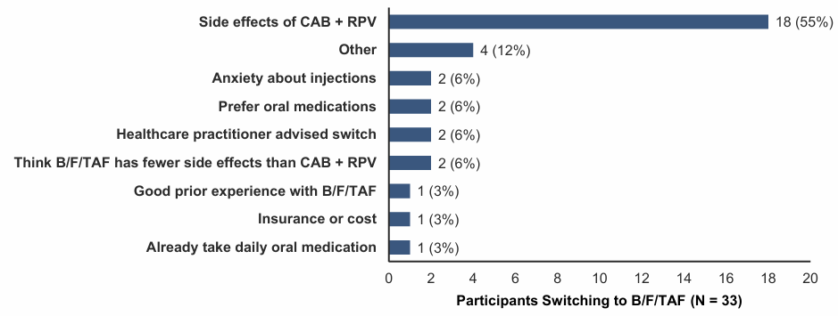 △研究特定问卷(第1天):从CAB+RPV转换为每日口服B/F/TAF的主要原因