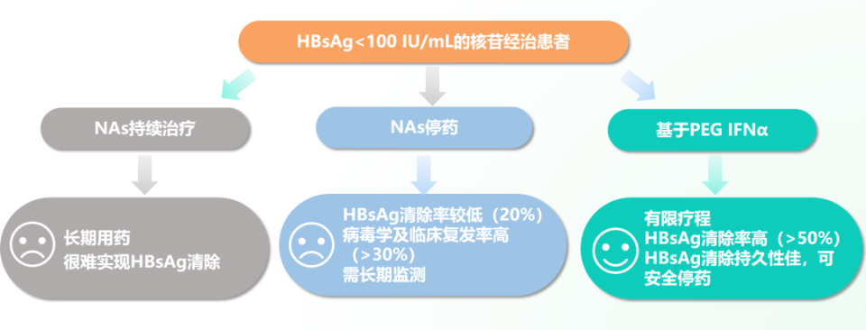 图2.HBsAg<100 IU/mL的NAs经治慢乙肝患者的临床治愈策略
