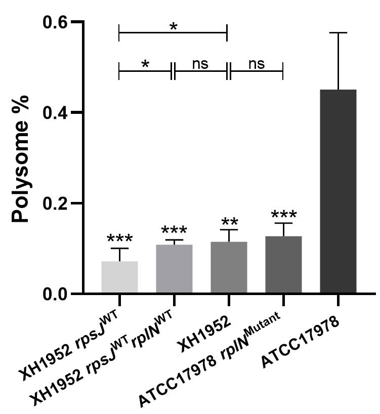 图2. 野生株、进化株与核糖体突变株中多聚核糖体的相对丰度
