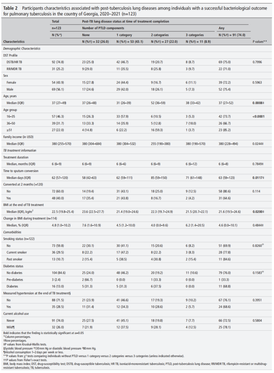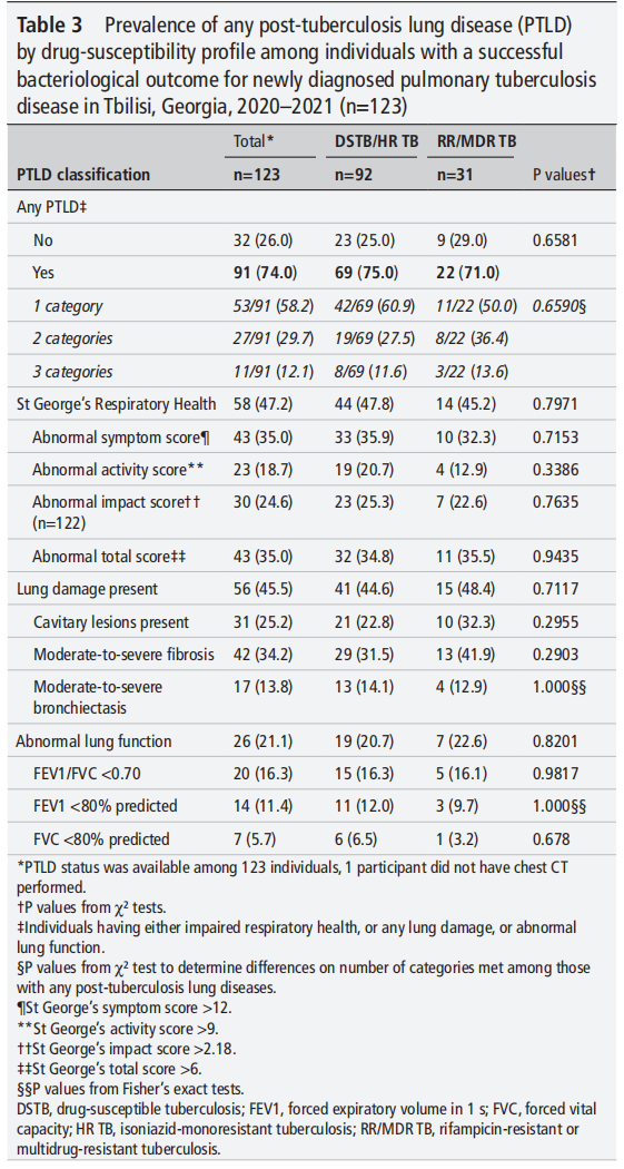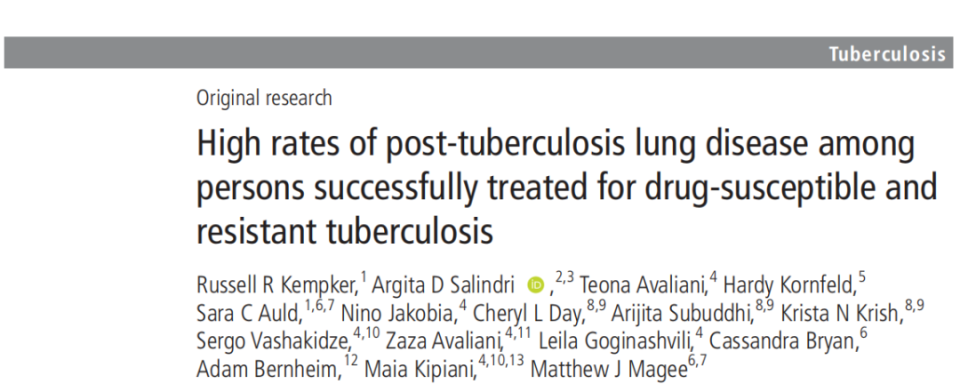 Kempker RR, Salindri AD, Avaliani T, et al. High rates of post-tuberculosis lung disease among persons successfully treated for drug-susceptible and resistant tuberculosis. Thorax. Published online May 7, 2025. doi:10.1136/thorax-2024-222350