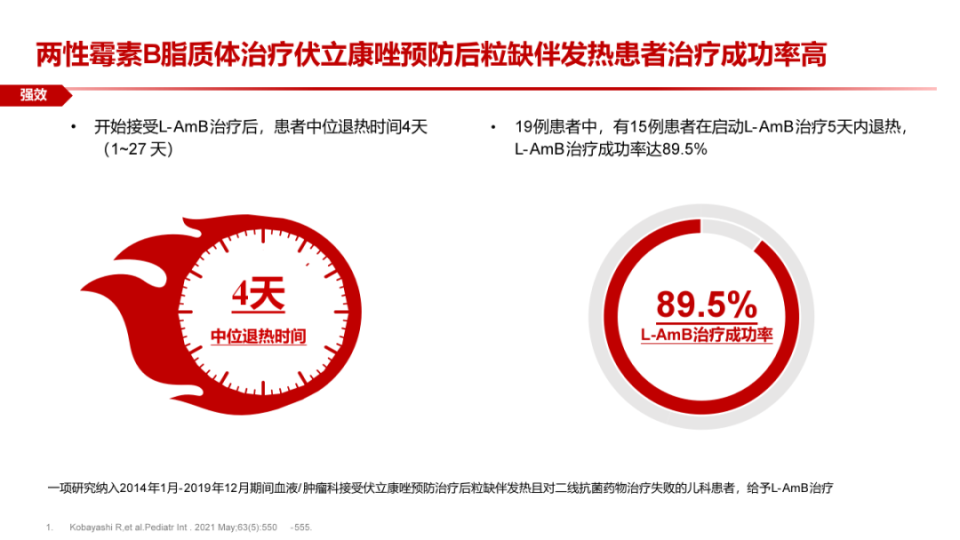 图4. L-AmB治疗伏立康唑预防后粒缺伴发热患者治疗成功率高[14]