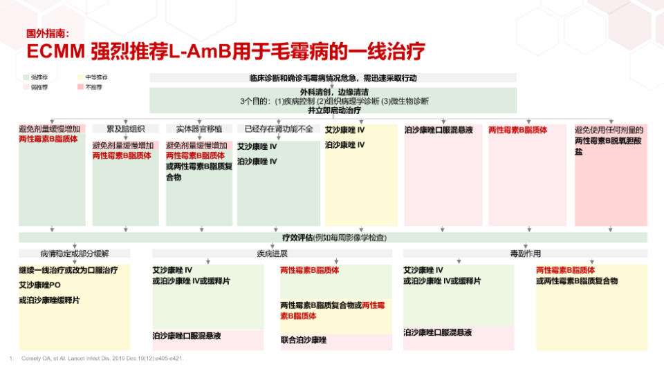 图7. 国外指南推荐L-AmB用于毛霉病的一线治疗[36]